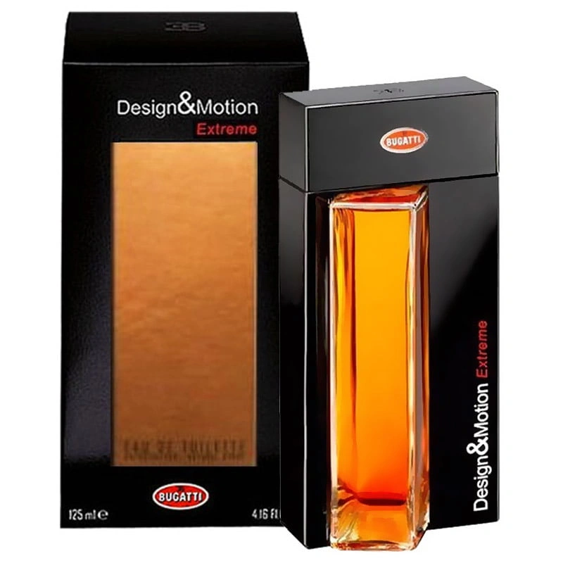 در سال 1999 میلادی عطر مردانه بوگاتی دیزاین اند موشن در کشور ایتالیا معرفی و تولید شد. این عطر با ترکیبات نت های آغازین فلفل صورتی,پرتقال ماندارین,هل و نت های میانی بلسان بنفش پالیساندر,درخت آلو,جوز هندی یا جوز بویا و نت های پایانی عنبر کهربایی,سدر ویرجینیایی,پتچولی یا نعنا هندی,مشک,علف هائیتی,چرم,وانیل تشکیل شده است.